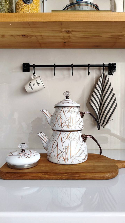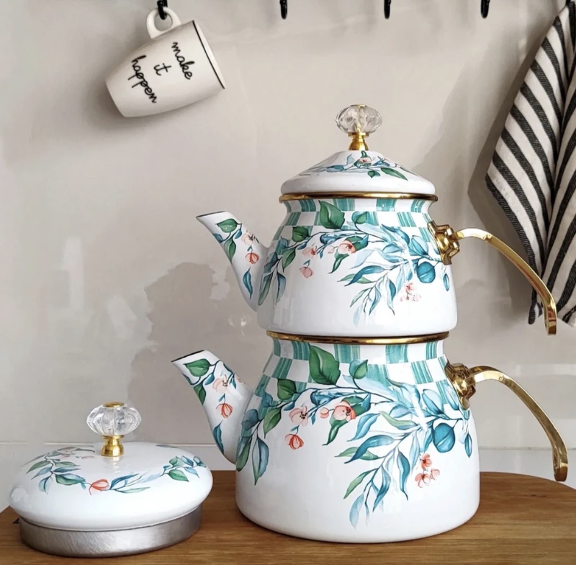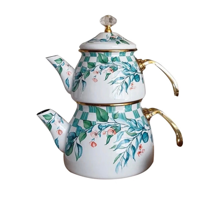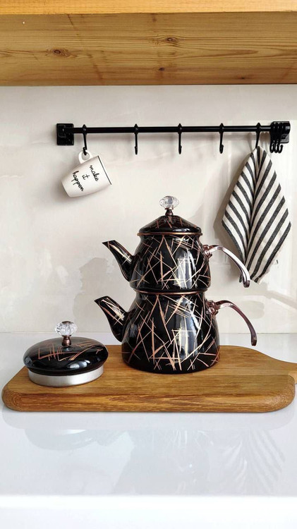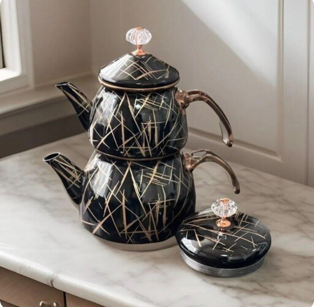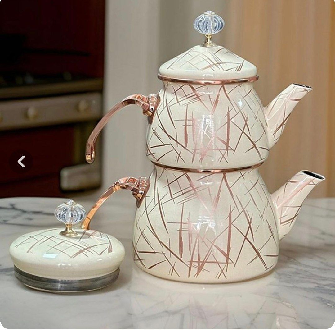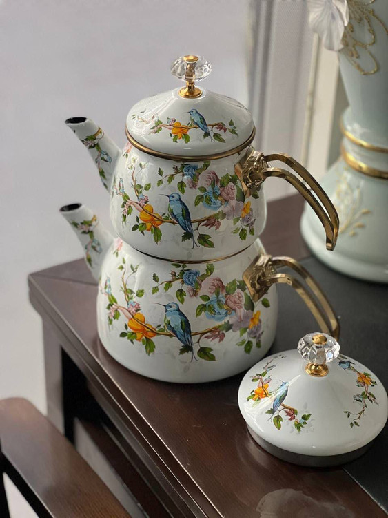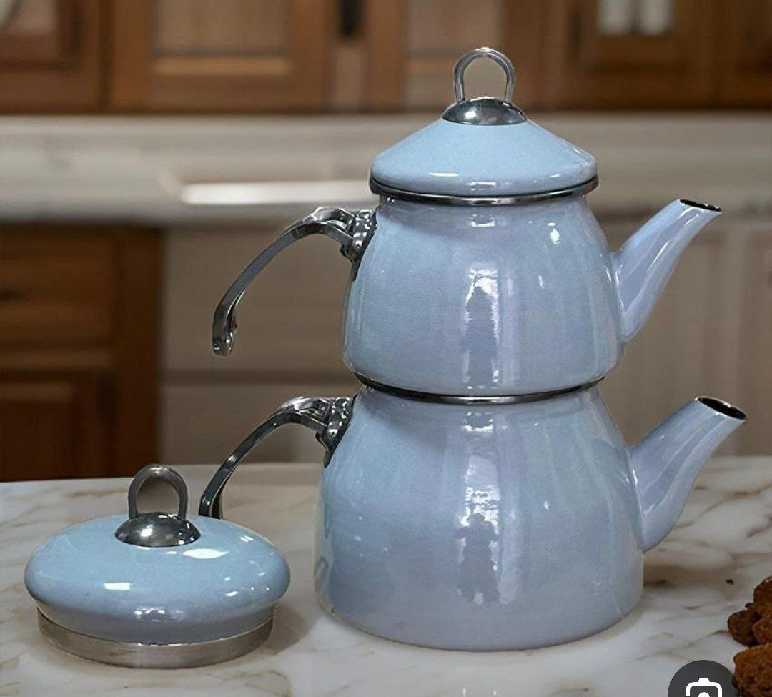 محصول کشور ترکیه _ برند شاهین _ کتری و قوری دارای درب جداگانه _ جنس لعاب ضد زنگ و ضد ضربه _ مقاومت در برابر حرارت زیاد